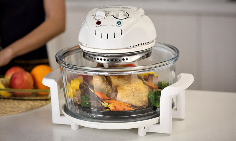 По существу, аппарат считается конвекционной печью, рабочий принцип которой построен на подаче горячего воздуха. Потому как в процессе приготовления еда одинаково обдувается с каждой стороны, блюдо выходит хорошо проваренным, прожаренным или пропеченным.