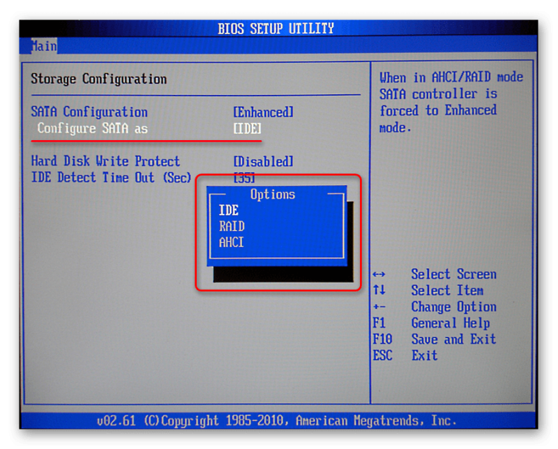 Сейчас все реже можно встретить БИОС с расширенной функциональностью опции «SATA Mode». Причина этому объяснена немного позднее, а пока разберем основные значения, которые есть в любой вариации «SATA Mode».
