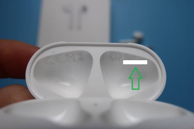 - Найти серийный номер можно на коробке, зарядном чехле, наушниках, проще всего его разглядеть на упаковке или кейсе, у наушников он расположен в местах перехода с ножки на головку и напечатан очень мелко.