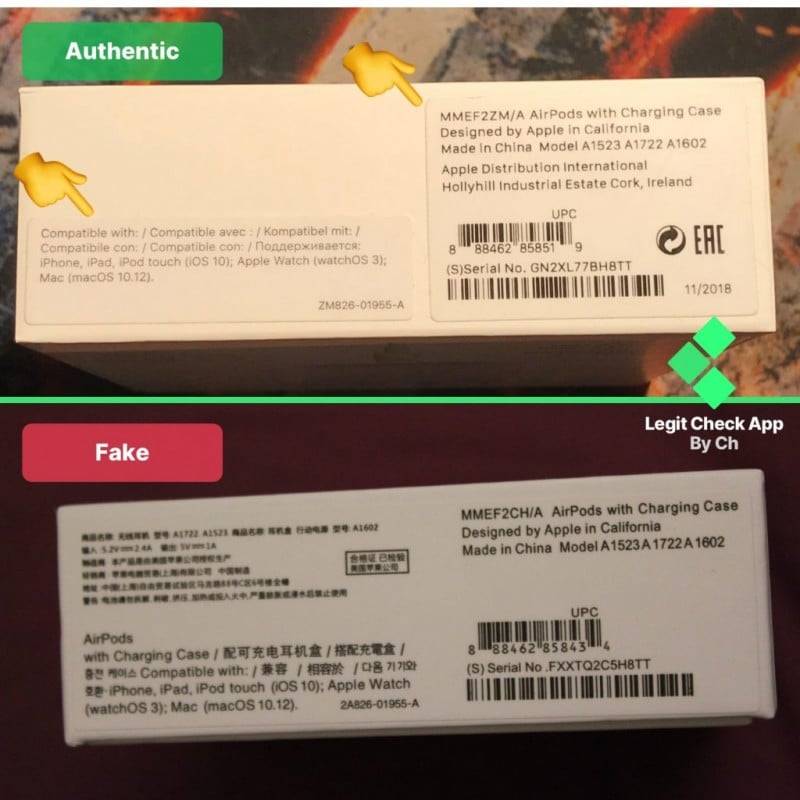 - Шрифт надписей на коробке с поддельными AirPods толще, чем на оригинальной коробке.