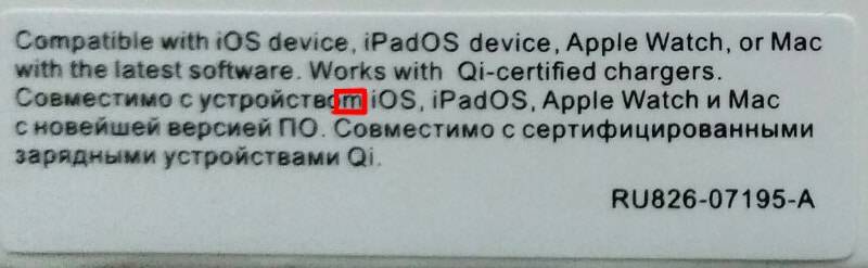- В оригиналах Аирподс этот код нечеткий и очень мелкий (если можете его рассмотреть без особых усилий, скорее всего, перед вами подделка).