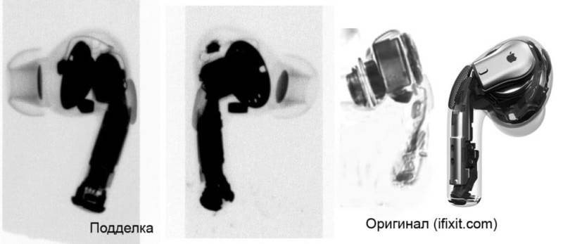 - у оригинальных AirPods на «ушах» есть отверстие диаметром 1–2 мм для микрофона, в китайских репликах его часто не делают;