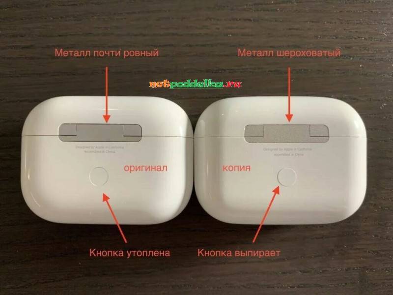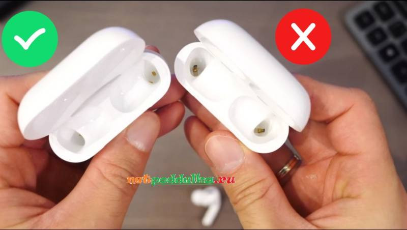 - у оригинальных AirPods на «ушах» есть отверстие диаметром 1–2 мм для микрофона, в китайских репликах его часто не делают;