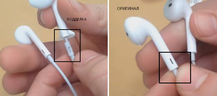 У оригинала провод толще и эластичнее, соответственно — прочнее, к тому же он будет меньше спутываться. Ризиновые кожухи в виде трубки возле самих наушников и 3.5мм-го коннектора mini jack мягкие и приятные на ощупь, к слову, в совсем уж дешевых подделках резиновой трубки вообще может не быть. Кроме того, длина провода правого и левого наушника должны быть идентичны, а не отличаться даже на несколько мм. Кстати, на оригинальных наушниках на проводе должна быть надпись «сделано в Китае», либо «сделано во Вьетнаме», или «сделано в Бразилии».