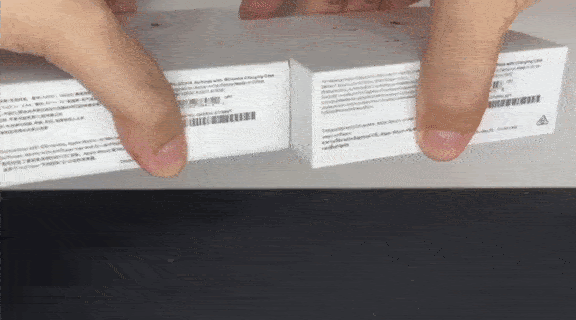 Демонстрация того, как крышка коробки от поддельных AirPods падает быстрее, чем оригинальная упаковка