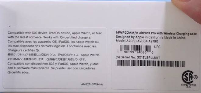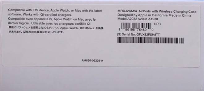 - в AirPods второго поколения и в Apple AirPods Pro каждое устройство имеет собственный серийный номер, при этом основным считается серийник зарядного бокса (он совпадает с буквенно-числовым кодом на коробке).