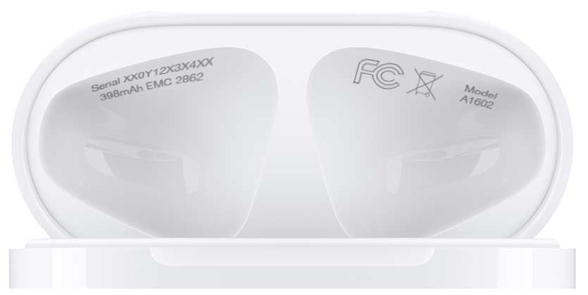 3. На самих наушниках Apple его можно найти, напечатанным мелким шрифтом под обозначением модели гаджета.