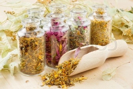 - ванночки из душицы, цветков ромашки, крапивы, валерианы, васильков синих;