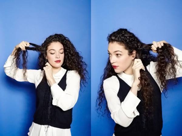 Здесь волосы накручиваются в разных направлениях на стайлеры, которые крепятся друг к другу, создавая сложное сочетание локонов.