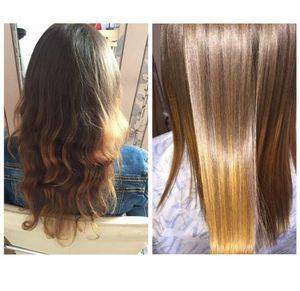 При выпрямлении волос главная работа происходит снаружи волоса. Вьющиеся волосы становятся прямыми, гладкими, меньше путаются. После похода в салон красоты вы обнаружите, что их легче укладывать в домашних условиях. К тому же, происходит восстановление волос изнутри, кутикула волоса запаивается. Эффект может длиться от пары недель до нескольких месяцев.