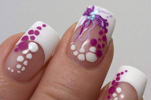 - Приступайте к дизайну. Аккуратными движениями нанесите элементы росписи одного цвета. Элементы росписи другого цвета наносите только после окончательного высыхания предыдущего. При нанесении мелких точек, капелек используйте дотс. Дайте маникюру высохнуть.