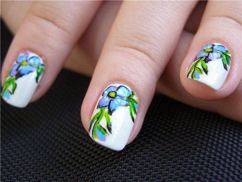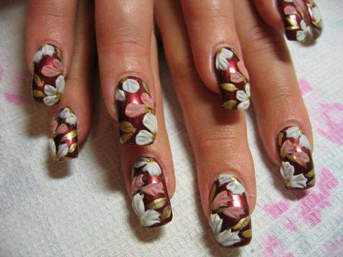 Роспись ногтей акриловыми красками для только начинающих пробовать данный вид маникюра состоит из следующих действий, выполняемых пошагово: