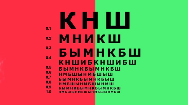 Существует также возможность пройти такой тест онлайн в интернете в домашних условиях. Дуохромный тест будет состоять в том, чтобы на картинке на расстояние 1 метра от монитора прочитать буквы.