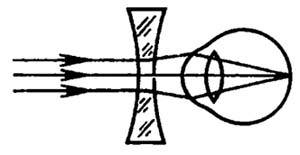Оптическую силу системы близорукого глаза нужно, ослабить, чтобы изображение попало на сетчатку.
