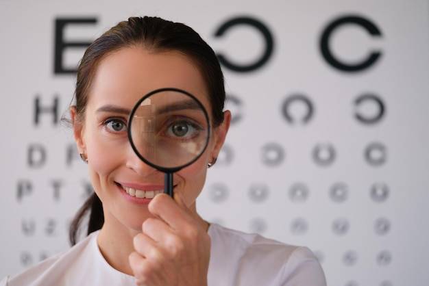 При проведении проверки зрения необходимо называть буквы из нескольких рядов. Человек читает то, что он видит. Чем больше буквы и чем меньше расстояние до таблицы, тем хуже острота зрения.