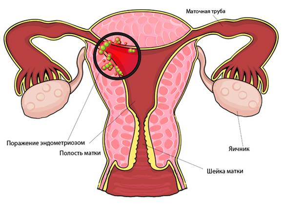 - внутренний (эндометриоз матки — прорастание эндометрия в глубь в мышечный слой).