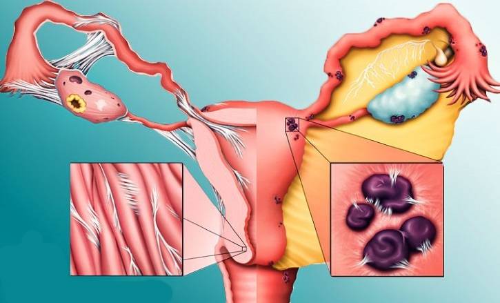 Для патологически разросшегося эндометрия характерна такая же цикличность, как и для слизистой матки. Скопление аномальной ткани за пределами матки может привести к воспалению, рубцеванию, возникновению болезненных кист, накоплению волокнистых тканей между репродуктивными органами, заставляя их «слипаться».