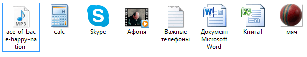 Так как содержимое файлов может быть различным, значки файлов имеют большее разнообразие. Примеры иконок: