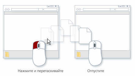 Если перетаскивать между двумя папками, расположенными на одном жестком диске, элементы будут перемещены без создания двух экземпляров одного файла или папки в одном месте.