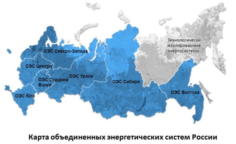 Вся энергосистема России состоит из единой энергетической системы (ЕЭС) и территориально изолированных энергосистем.
