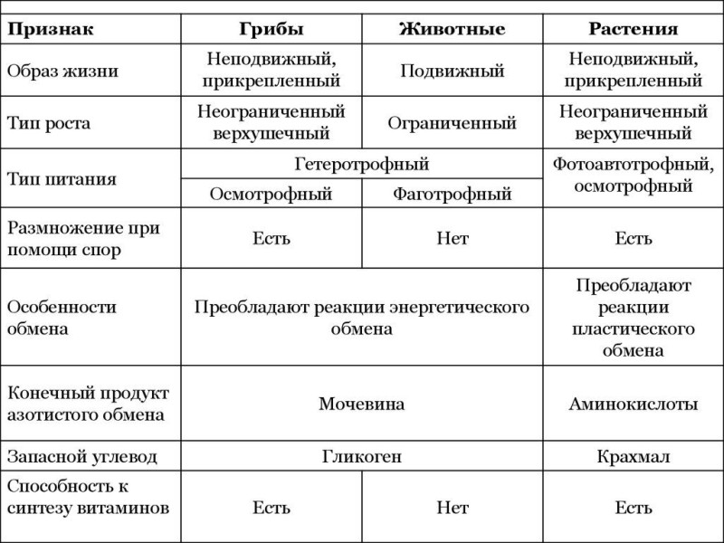 Для нормального функционирования любого живого организма необходимы белки (белки), углеводы и жиры (липиды). Протеины синтезируются в клетках из аминокислот, поступающих у гетеротрофов из внешней среды. Жиры входят в состав клеточных стенок, становится запасом энергии при дефиците углеводов. Сложные углеводы образуются из глюкозы, они являются энергетическим материалом. В растениях они синтезируются из простых углеводов — крахмала и клетчатки. У животных они превращаются в гликоген, здесь грибы имеют полное сходство с фауной, в их организме также присутствует этот полисахарид.