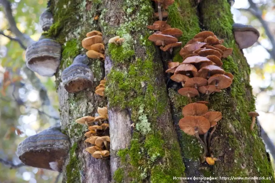 Грибы, с другой стороны, являются гетеротрофами и питаются органическими веществами. Они обычно взаимодействуют с другими организмами, такими как древесные растения, для получения питательных веществ. В свою очередь, грибы могут помогать растениям, предоставляя им питательные вещества и подпитывая их.