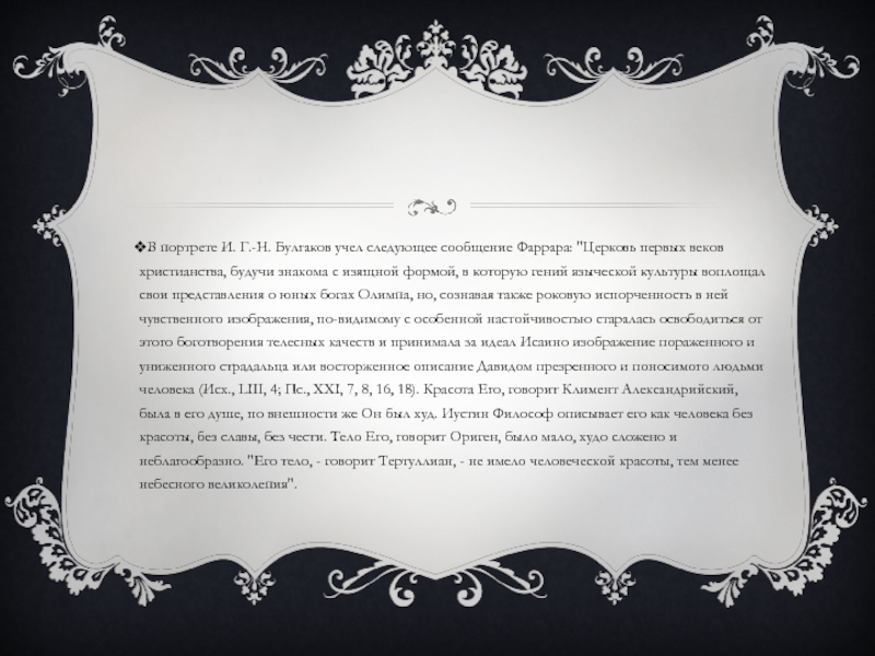 Слайд 6В портрете И. Г.-Н. Булгаков учел следующее сообщение Фаррара: “Церковь первых