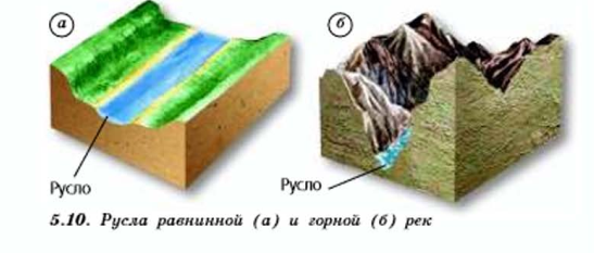 - Русло реки — результат её деятельности. Озеро заполняет природную впадину любого происхождения.