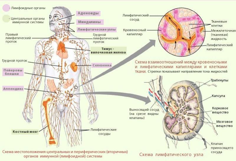 Кроме лимфоузлов, лимфатическая ткань есть и в других зонах тела.