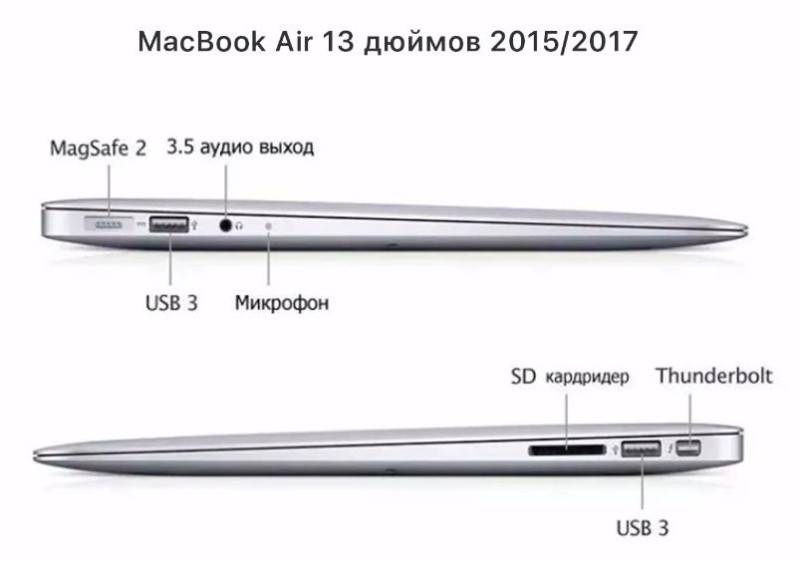 | ПОРТЫ | Два порта USB 3, 1 порт Thunderbolt 2 | Два порта Thunderbolt 3 (USB-C) |