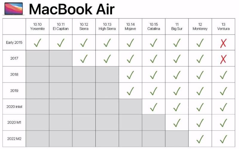 Обратите внимание на представленную табличку. В 2017 году вы можете установить систему macOS Monterey, и она является для этого компьютера последней, а для 2015 и нескольких более ранних компьютеров – macOS Big Sur
