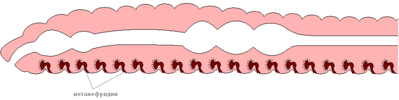 Органы выделения имеют вид тоненьких петлеобразно изогнутых трубочек, которые одним концом открываются в полость тела, а другим наружу. Новые, более простые воронкообразные органы выделения— метанефридии выводят вредные вещества во внешнюю среду по мере их накопления.