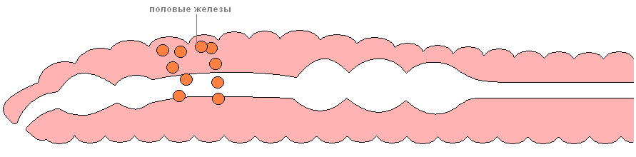 Затем они по семяпроводам попадают в половые отверстия, которые находятся в пятнадцатом сегменте. В тринадцатой секции расположены два яичника и приемные воронки яйцеводов, которые заканчиваются половыми отверстиями в четырнадцатом сегменте. Во время размножения все черви становятся самцами, так как у них активны только семенники.