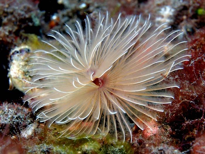 Самые интересные из них – это сидячие черви. Они сами создают трубочки, в которых и живут. Их кожа выделяет секрет, который затвердевает вокруг тела. Некоторые черви дополнительно прикрепляют к себе мелкие камни и песчинки.