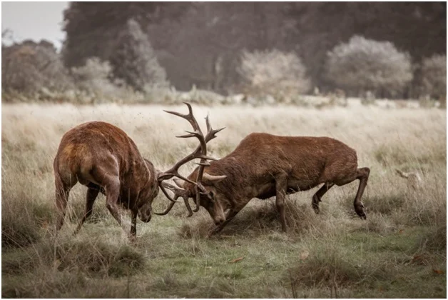 В этот период у зверей начинается брачный период – гон. Часто можно наблюдать драки между самцами за самку.