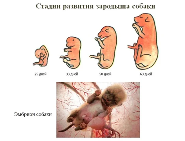 Продолжительность внутриутробного развития различна у зверей разных видов и зависит от размеров животного. Например, беременность собаки продолжается 2 месяца.