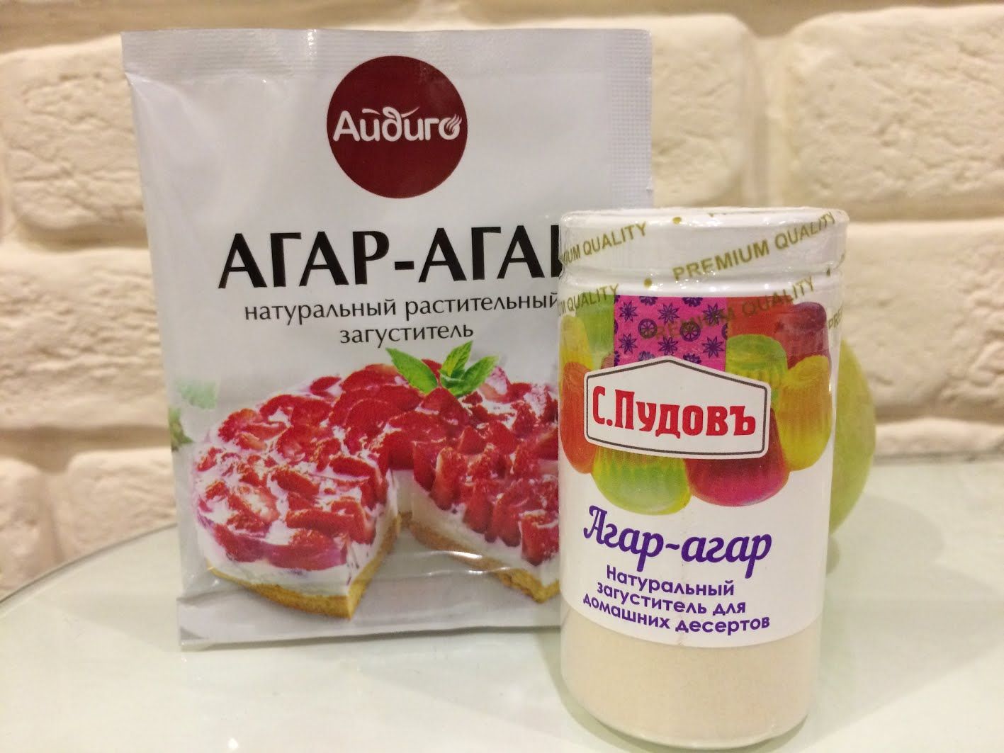 Это самый распространенный аналог желатин. Его получают из стенок красных водорослей. Агар-агар лишен особого вкуса, запаха и цвета. При растворении в жидкости вещество помогает получить полупрозрачное желе.