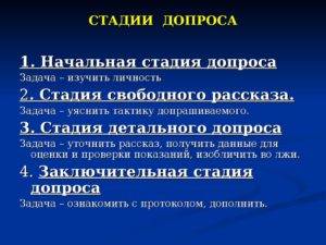 Поэтапное описание допроса обвиняемого выглядит следующим образом: