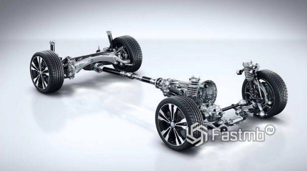 Использует симметричную систему AWD, которой по умолчанию комплектуются все автомобили. Передние и задние пары колес делят между собой крутящий момент в отношении 60/40, в пользу передних, причем соотношение может автоматически изменяется в зависимости от режима езды.