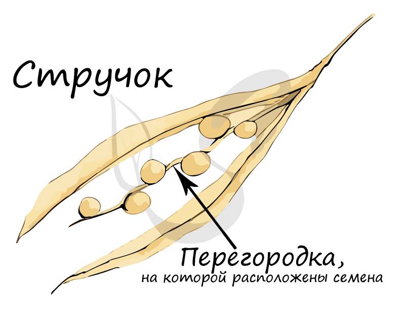 Семена у боба располагаются на перегородке плода, а у стручка на створках.
