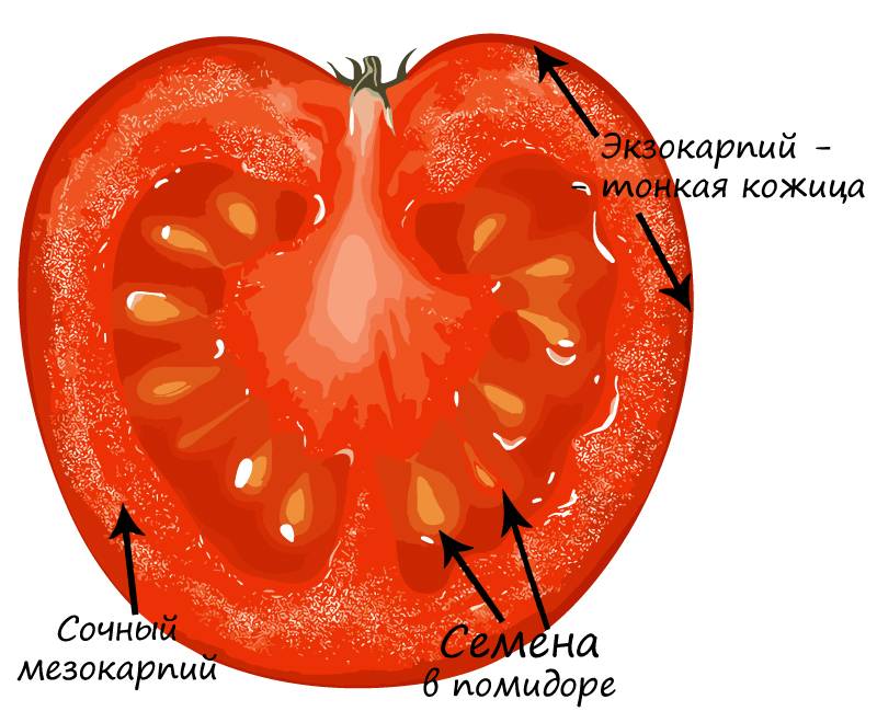 - Ягода — многосемянный невскрывающийся плод с сочным мезокарпием, экзокарпий которого состоит из тонкой кожицы. Есть у помидора, смородины, винограда.