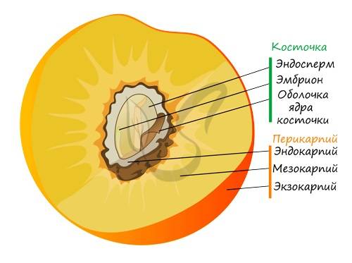 У ягоды внутренний слой околоплодника мясистый, а у костянки он представляет собой косточку – одревесневшую мякоть, внутри которой расположено семя.