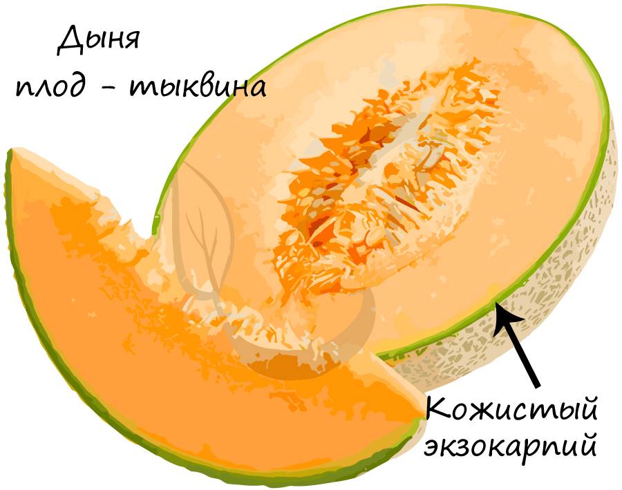 Какой плод будет многосемянным, рассмотрим на примере следующего типа. Дыня, патиссон, тыква, люффа, огурец – представители семейства тыквенных, которые получили свое название благодаря одноименному типу плодов. Он плотный, ярко-оранжевый, с характерным рисунком наружного слоя. Внутренний слой является сочным, содержит большое количество воды, в которой растворены очень полезные вещества.