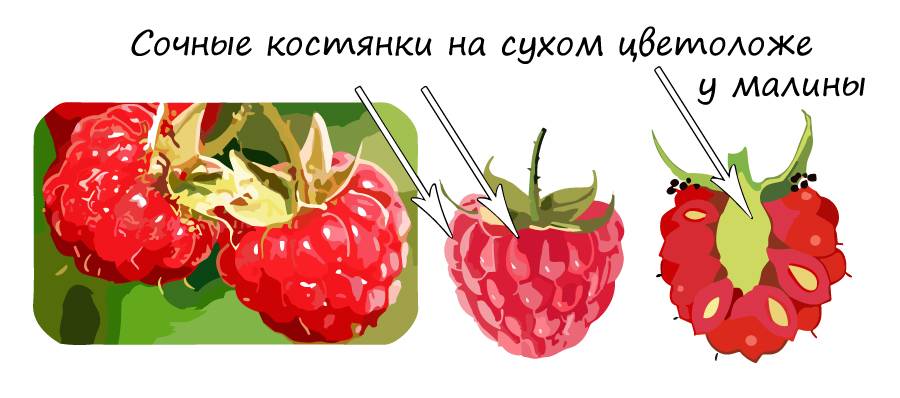 Плод костянки может быть ценокарпным, образованным из сросшихся плодолистиков, и апокарпным. То есть таким, который сформировался из ряда самостоятельных плодолистиков. Примером апокарпного плода являются вишня и персик. Примером ценокарпного плода – малина, ежевика или калина.