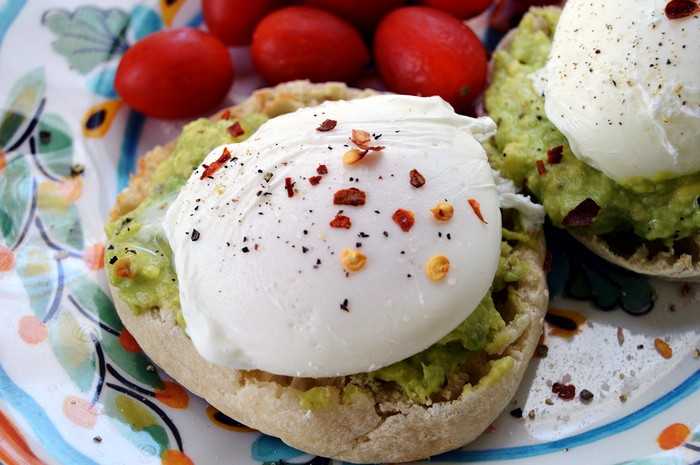 - Бенедикт по-мексикански — вместо ветчины, на хлеб намазывают пасту из авокадо. Также сразу используют два соуса — голландез и сальса.