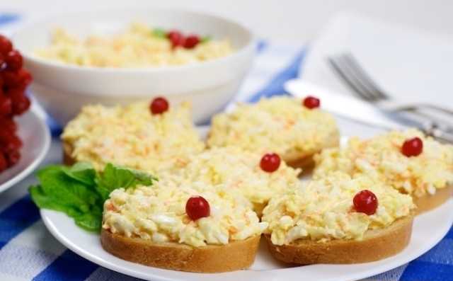 Яичные салаты можно подавать на стол и в виде самостоятельного блюда, в качестве порционных салатов и применять для намазки тостов и праздничных бутербродов или фарширования тарталеток.