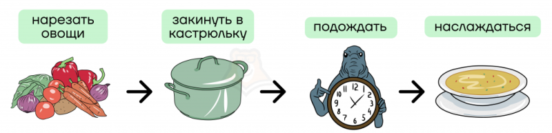Хороший пример такого алгоритма – процесс приготовления супчика.