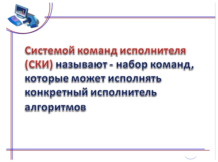СКИ – набор простейших команд, понятных данному исполнителю.