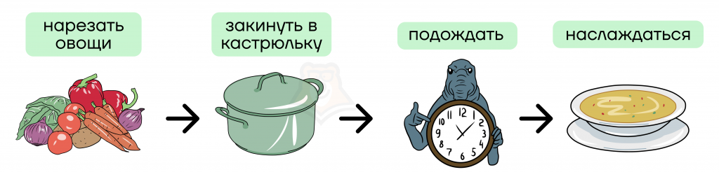 Хороший пример такого алгоритма – процесс приготовления супчика.