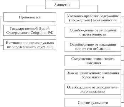 Объявление амнистии относится к исключительной компетенции РФ в лице ГД (ст. 103 К, ст. 84 УК). Амнистия объявляется путем перечисления ряда обозначенных по полу, возрасту, социальному положению, назначенному наказанию и другим признакам лиц. В акте об амнистии также содержится указание на те категории лиц, в отношении которых амнистия не применяется.
